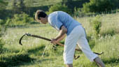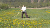 V této lekci si ukážeme techniku ergonomického kosení, která dovoluje kosit s rovnou páteří. Až se ji naučíte, měli byste se cítit po kosení lépe než před kosením. Kosení touto metodou je velmi pohodlné a ulehčuje práci kosení, tím dává prostor i ženám, které pokosí i metr vysokou trávu a mužům dovolí zvýšit rychlost kosení.
